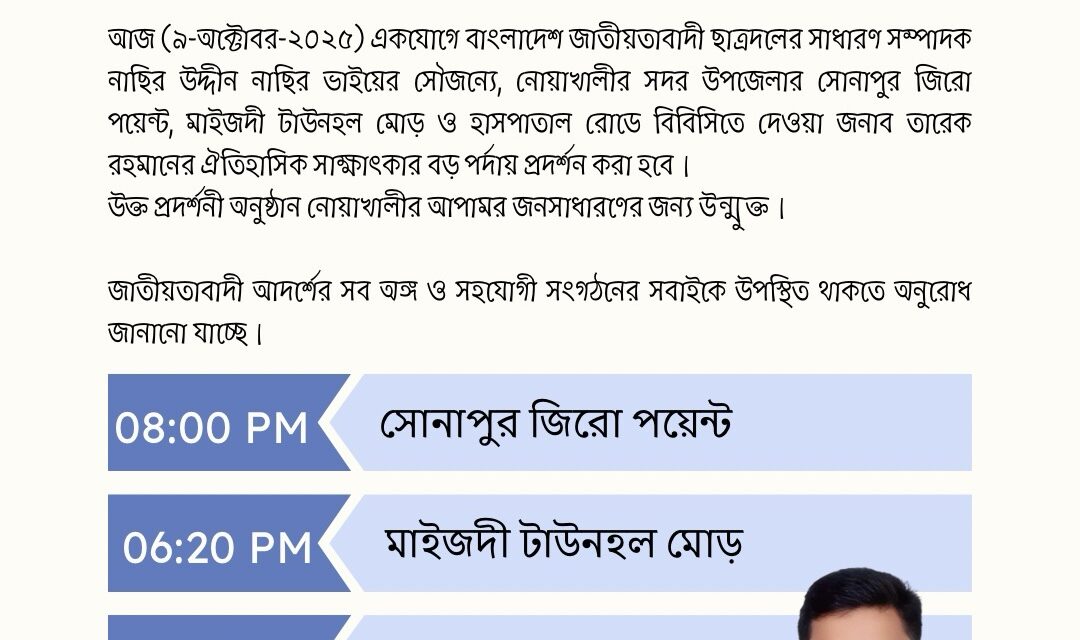 নাছির উদ্দীন নাছিরের নির্দেশনায় দুর্গাপূজায় নিরাপত্তা ও যানজট নিরসনে নোয়াখালী জেলা ছাত্রদলের কার্যক্রম