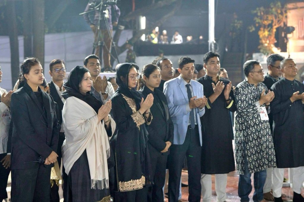 শ্রদ্ধা নিবেদনের পর ভাষা শহীদদের আত্মার মাগফেরাত কামনায় মোনাজাতে শরিক হন প্রধানমন্ত্রীসহ শহীদ মিনারে জড়ো হওয়া হাজারো মানুষ।