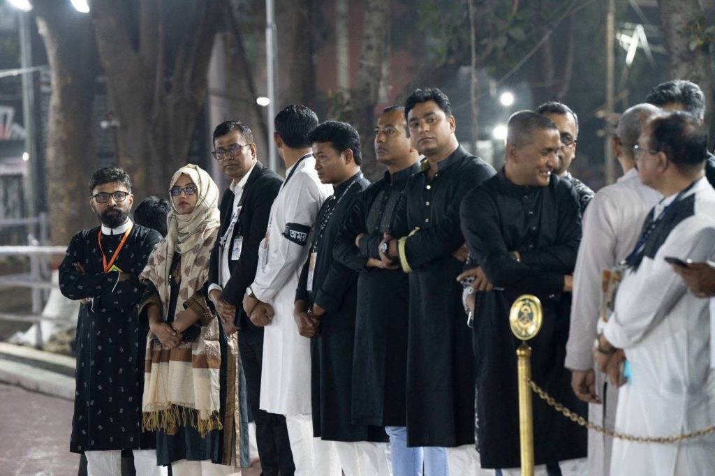 মোনাজাত শেষে মন্ত্রিসভার সদস্য ও নিজের উপদেষ্টাদের সঙ্গে নিয়ে শ্রদ্ধা জানান প্রধানমন্ত্রী। এরপর শ্রদ্ধা জানান বিএনপির নেতারা।
