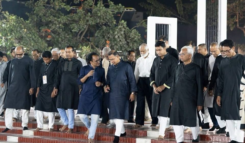 মোনাজাত শেষে মন্ত্রিসভার সদস্য ও নিজের উপদেষ্টাদের সঙ্গে নিয়ে শ্রদ্ধা জানান প্রধানমন্ত্রী। এরপর শ্রদ্ধা জানান বিএনপির নেতারা।