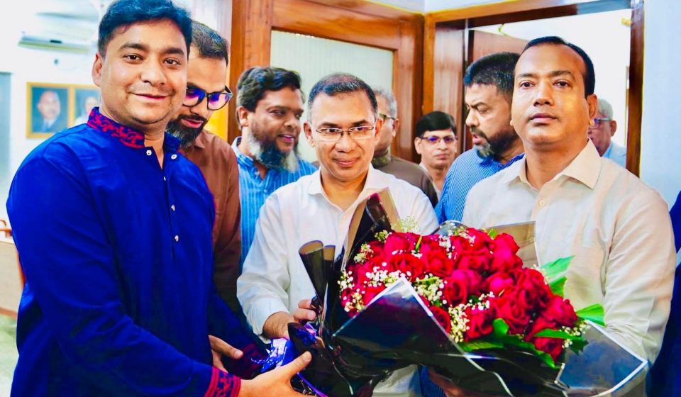 বিএনপি মাননীয় চেয়ারম্যান জনাব তারেক রহমানকে ফুলেল শুভেচ্ছা